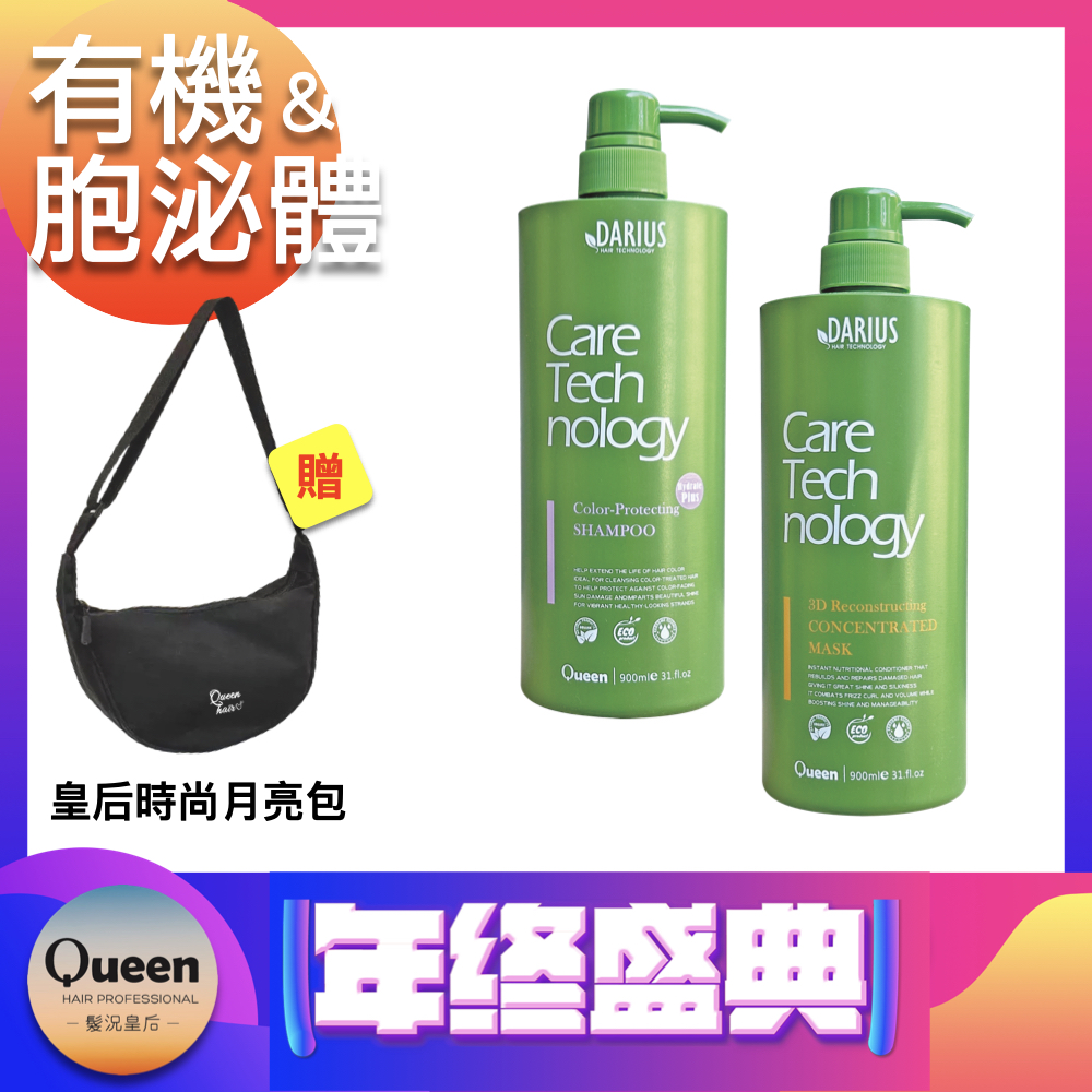 髮況皇后 年終盛典 髮平衡有機科研染燙後洗護套組-水光洗900ml*1+3D水光髮膜900ml*1 贈 皇后月亮包(顏色隨機)*1