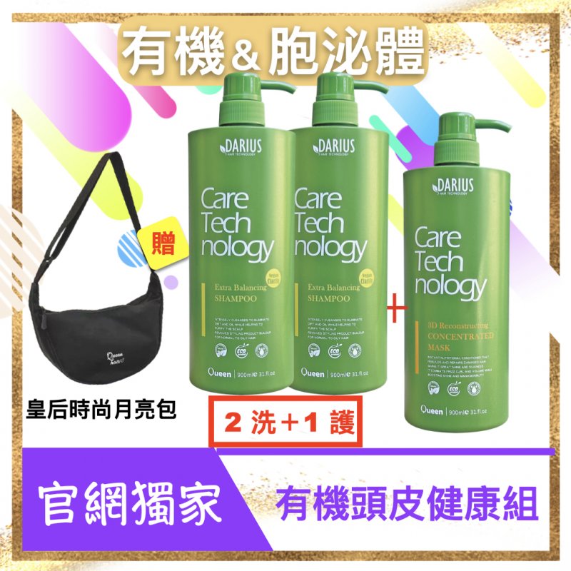 髮況皇后 官網獨家 髮平衡有機頭皮健康洗護套組-平衡洗900ml*2+3D水光護髮膜900ml*1 贈 皇后月亮包(顏色隨機)*1