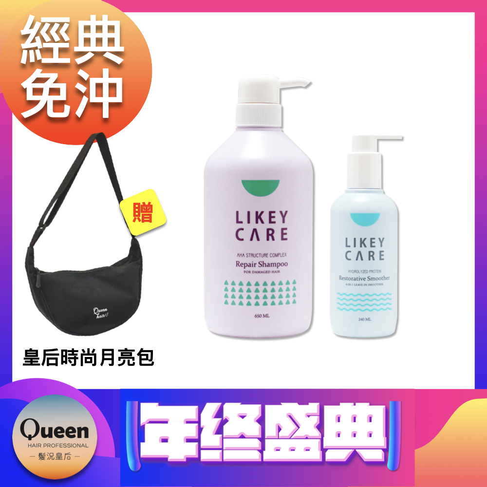 髮況皇后 年終盛典 艾卡爾水蛋白免沖洗護組-舒果緊緻修護洗髮精 650ml*1+水蛋白免沖護髮膜240ml*1 贈 皇后月亮包(顏色隨機)*1