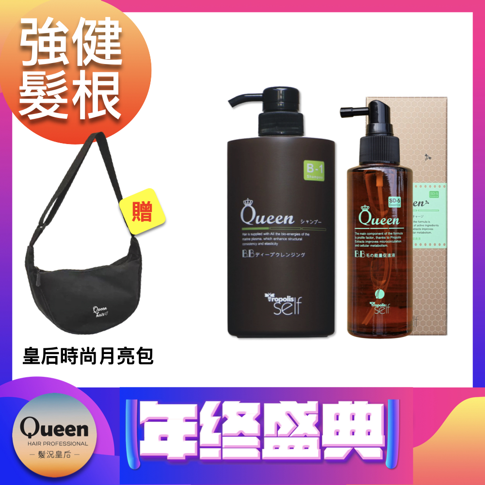 髮況皇后 年終盛典 頭皮強健保養組-頭皮活化清潔露750ml*1+蜂膠液根源能量精華120ml*1贈 皇后月亮包(顏色隨機)*1