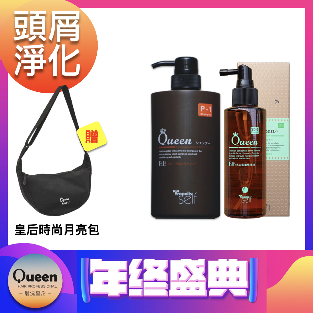 髮況皇后 年終盛典 蜂膠淨化保養組-蜂膠淨化清潔露750ml*1+蜂膠液根源能量精華120ml*1贈 皇后月亮包(顏色隨機)*1