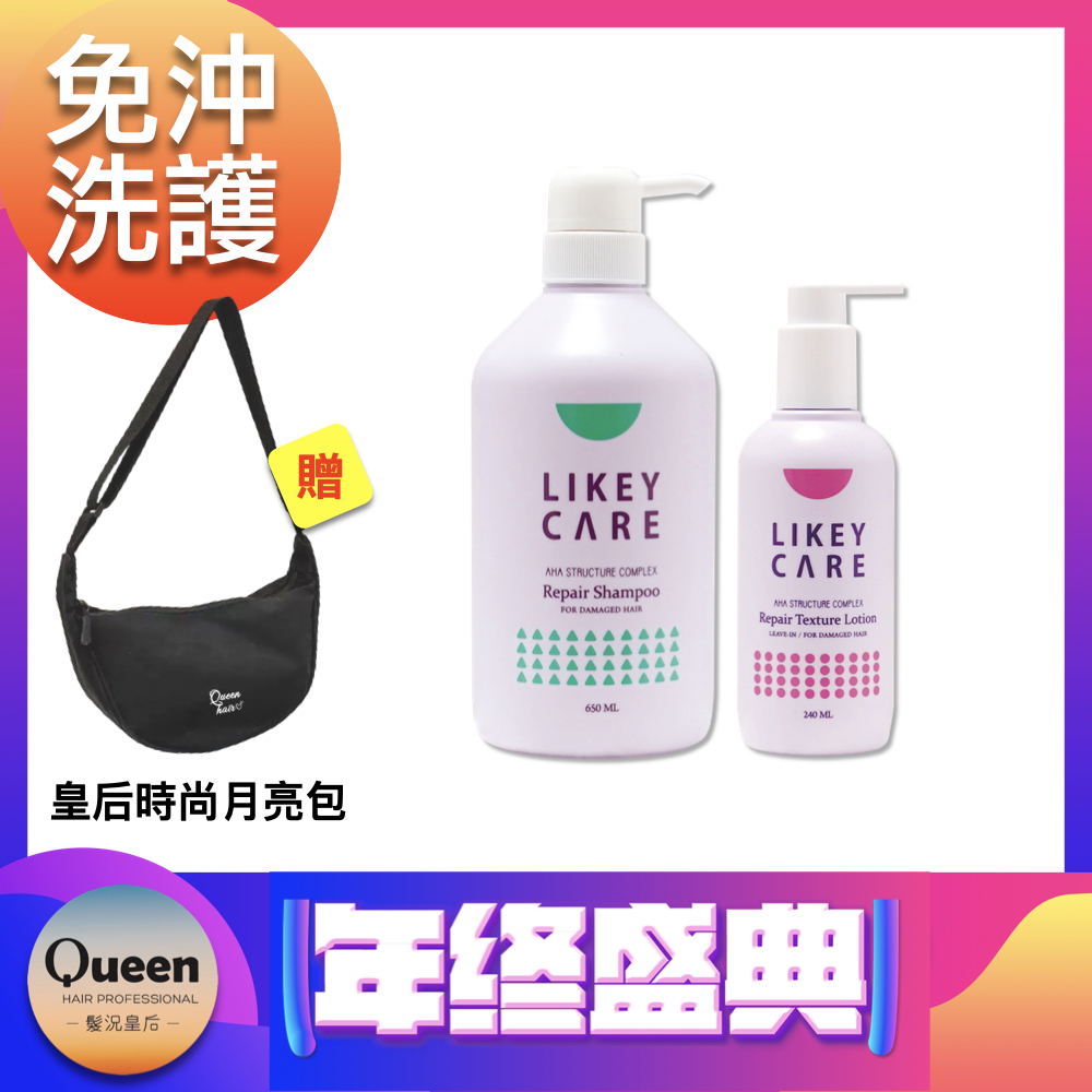 髮況皇后 年終盛典 艾卡爾納豆酸免沖洗護組-舒果緊緻修護洗髮精 650mll*1+納豆酸免沖護髮精華240ml*1 贈 皇后月亮包(顏色隨機)*1