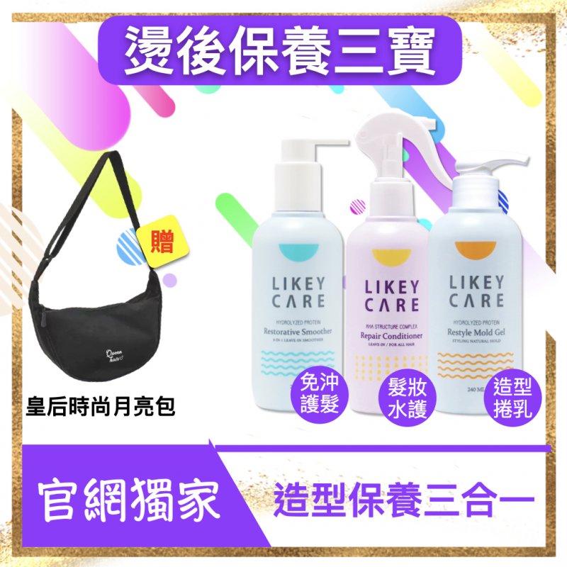 髮況皇后 官網獨家 艾卡爾燙髮保養三寶組-+水蛋白免沖護髮膜240ml*1 +魔法霧髮妝水240ml*1+水蛋白卡士達固捲乳240ml*1 贈 皇后月亮包(顏色隨機)*1